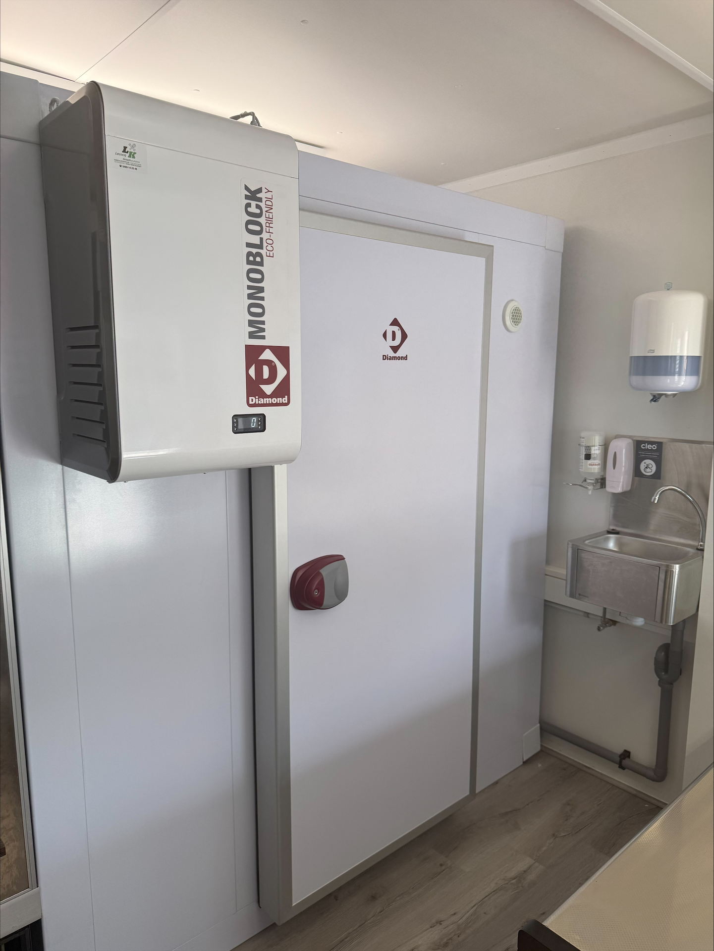 Volledig uitgeruste koelcel met verlichting en praktische opbergrekken - Vacuümmachine voor het correct verpakken van producten
